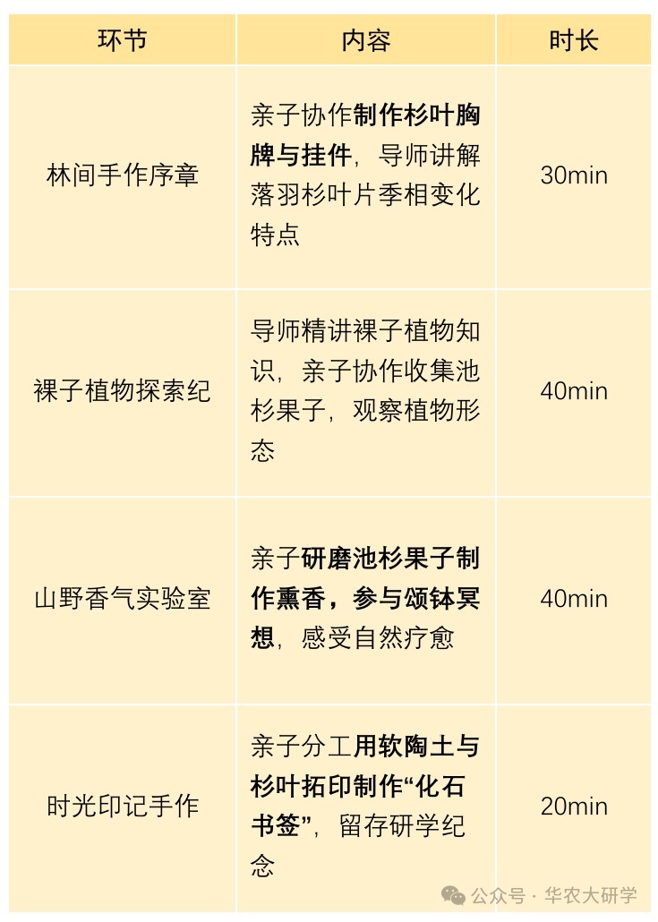 「杉野拾光」亲子自然研学营,避开人潮喧嚣,深入华农树木园与善境花园的自然秘境,以手作链接知识,以陪伴浸润成长,让亲子家庭在触摸自然肌理的过程中,读懂裸子植物的生存智慧,珍藏一段温暖而深刻的山野记忆。